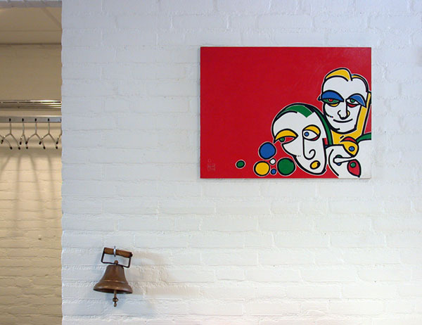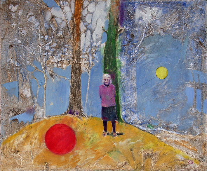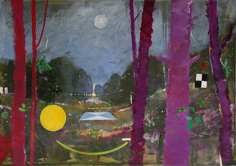 Ten geleide bij de in de Adalbert School geëxposeerde schilderijenIn de gangen van de Adalbertschool hangen een zestal vroegere schilderijen van de Mookse kunstenaar Arno Beijk. Ze ontstonden in de jaren 1985-1986 in ateliers in Nijmegen, Middeland en Parijs en zijn uitgevoerd in acrylverf op paneel of doek. |